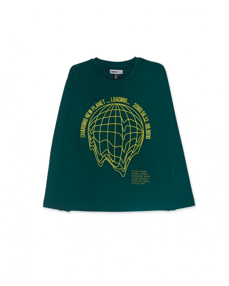 Μακρυμάνικη μπλούζα σε πράσινο χρώμα με ανάγλυφη στάμπα - Nath kids.