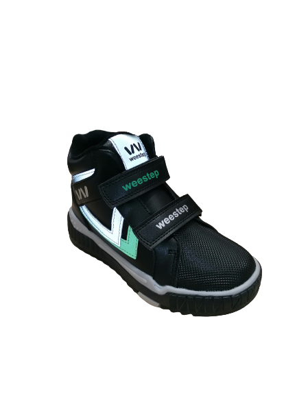 Παιδικό Ανατομικό Μποτάκι με ψεύτικη γούνα στο εσωτερικό σε μαύρο με πράσινες και γκρι λεπτομέρειες Weestep.