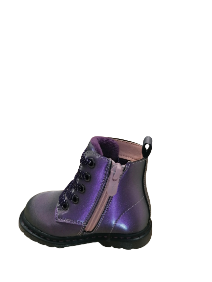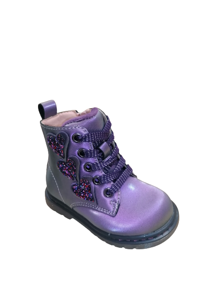 Παιδικό Ανατομικό Μποτάκι με ψεύτικη γούνα στο εσωτερικό σε ιριδίζον μωβ χρώμα με καρδούλες στο πλάι Weestep.
