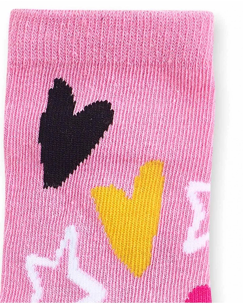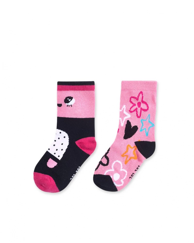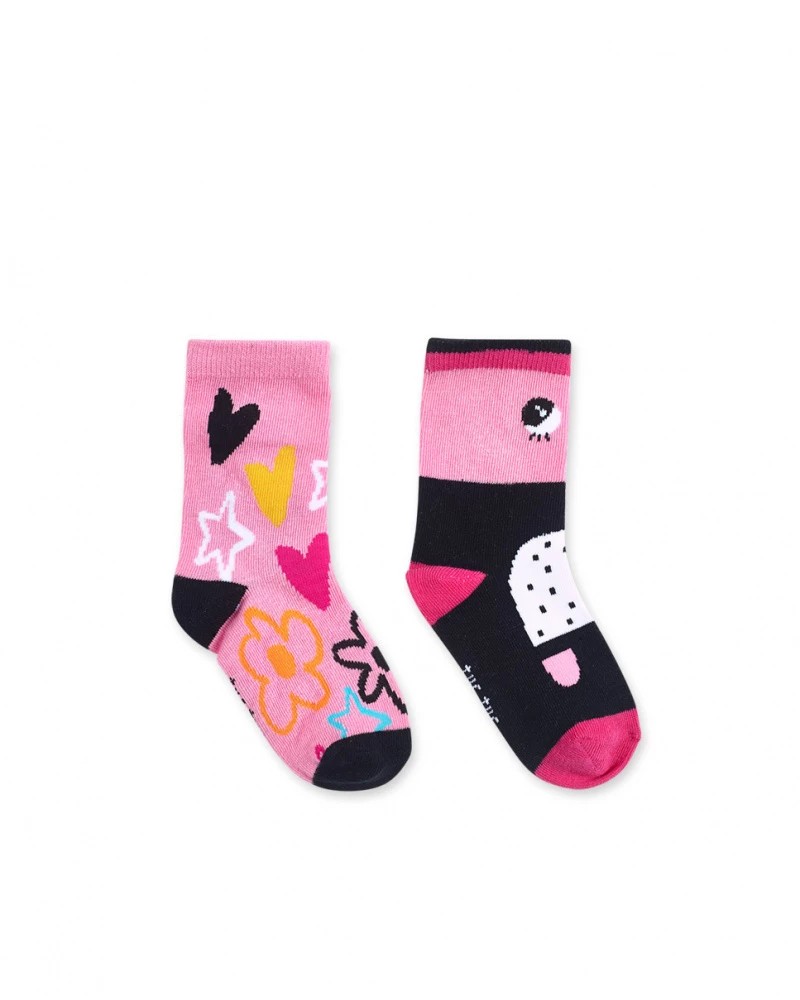 Σετ 2 ζευγάρια κάλτσες ροζ με σχέδιο καρδιάς και αστέρια και μαύρο με ένα χρωματιστό πρόσωπο για κορίτσι. Collection Big Hugs - Tuc Tuc.